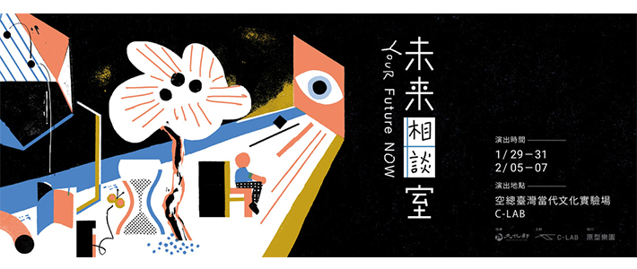 關於展演:《未來相談室》是一個參與式藝術計畫。每一場展演中,觀眾將和五位真實學有專精的「人生預測師」一對一互動,獲得自己專屬的未來預言,經歷一趟忐忑的未來之旅。
